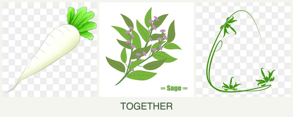 - Pest Control: Sage is known for its pest-repellent properties, which can benefit radishes by deterring common pests like cabbage moths.
