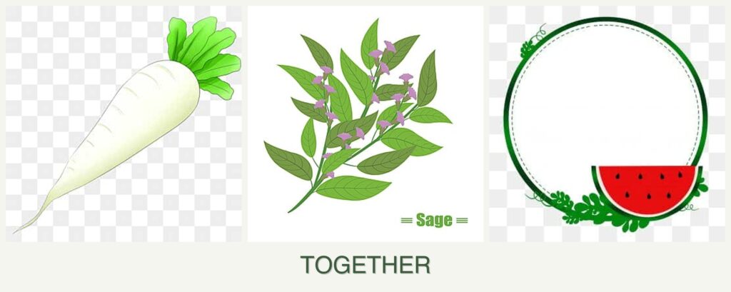- Pest Control: Sage can repel pests that may otherwise harm radishes and watermelons.