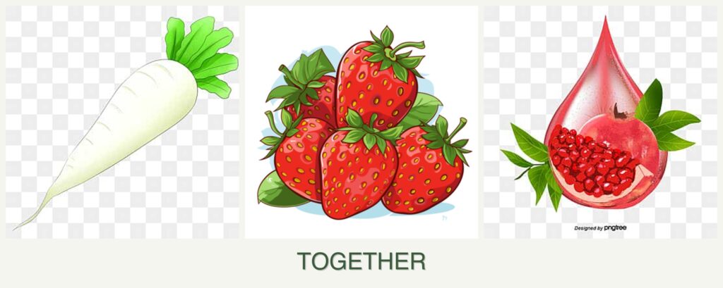 - Nutrient Needs and Spacing: Radishes and strawberries have relatively shallow roots, while pomegranates have deeper root systems. This difference can lead to competition for nutrients and water.