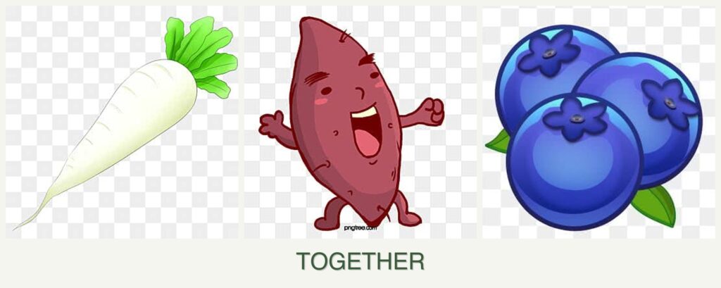 While radishes, sweet potatoes, and blueberries are not ideal companions, pairing radishes with sweet potatoes can offer some benefits: