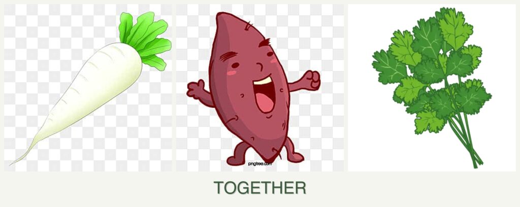 - Growth Requirements: Radishes grow quickly and prefer cooler weather, while sweet potatoes thrive in warm, sunny conditions. Cilantro can tolerate both but prefers cooler temperatures.