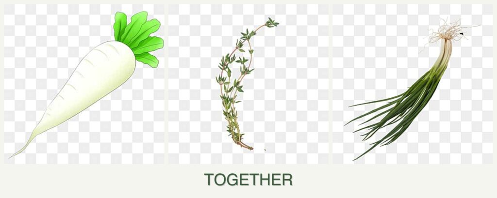 - Soil Health Benefits: Thyme and chives can improve soil structure and fertility, benefiting radish growth.
