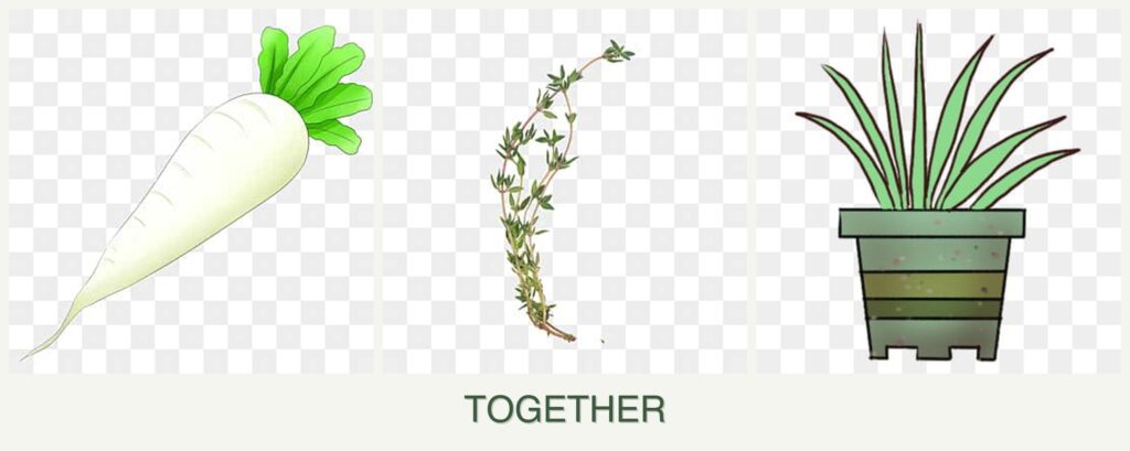 - Pest Control: Thyme and lemongrass are known for their aromatic properties, which can deter pests that typically target radishes.