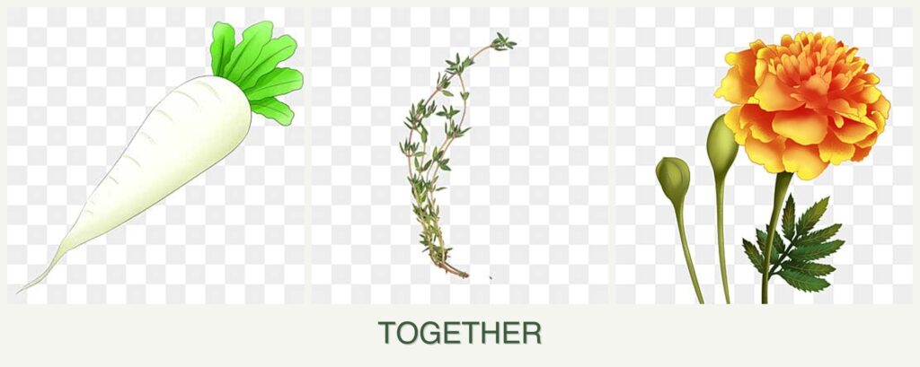 Can you plant radishes, thyme and marigolds together?