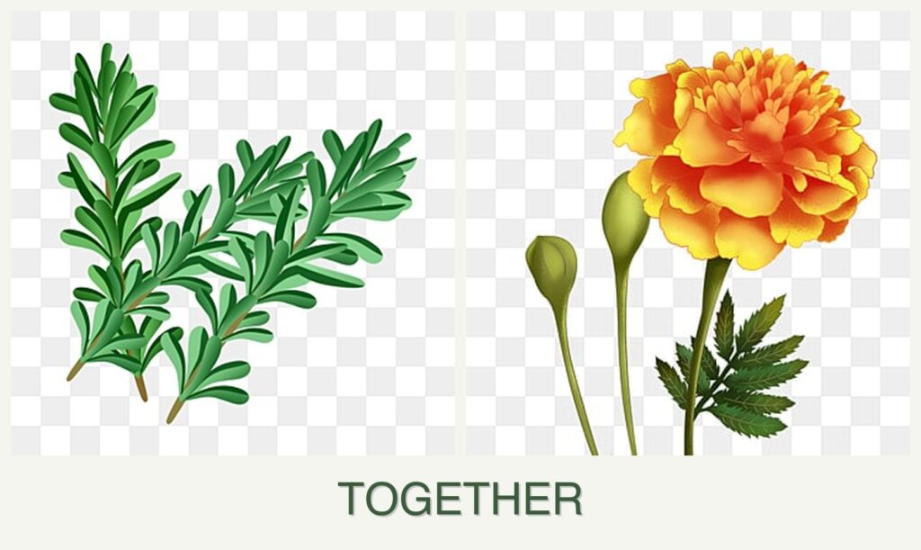 - Growth Requirements: Both rosemary and marigolds prefer full sun and well-drained soil, making them suitable companions.