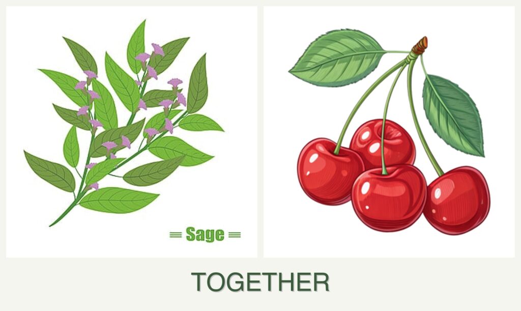 - Companion Plants: Consider planting sage with other herbs like rosemary or thyme, and pair cherries with other fruit trees or berry bushes that have similar needs.