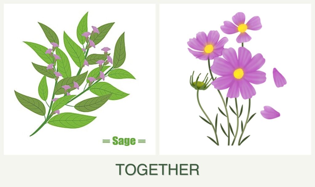 - Pest Repellent Properties: Sage’s aroma helps keep aphids and other pests away from cosmos.