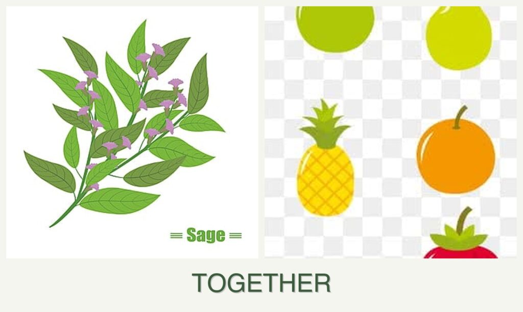 Avoid planting sage with cucumbers and pears with potatoes, as they can inhibit growth.