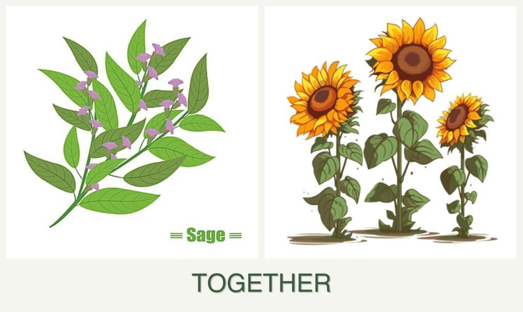 - Pest Control: Sage can help deter certain pests that may otherwise affect sunflowers.
