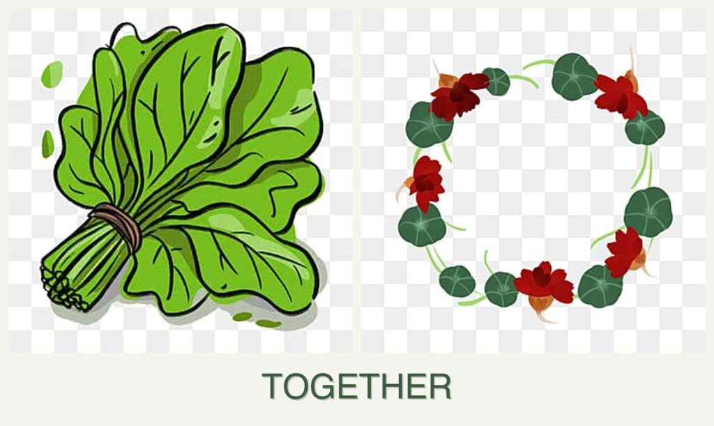 - Space Efficiency: Nasturtiums’ trailing habit complements spinach’s low growth, allowing efficient use of space.