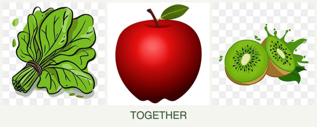 - Growth Requirements: Spinach is a cool-season annual that thrives in partial shade, while apples and kiwis are perennial plants needing full sun. Apples and kiwis also require significant space and support structures, unlike spinach.