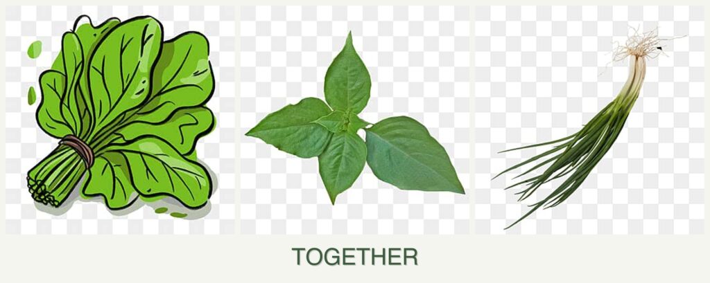 Planting spinach, basil, and chives together can offer several advantages: