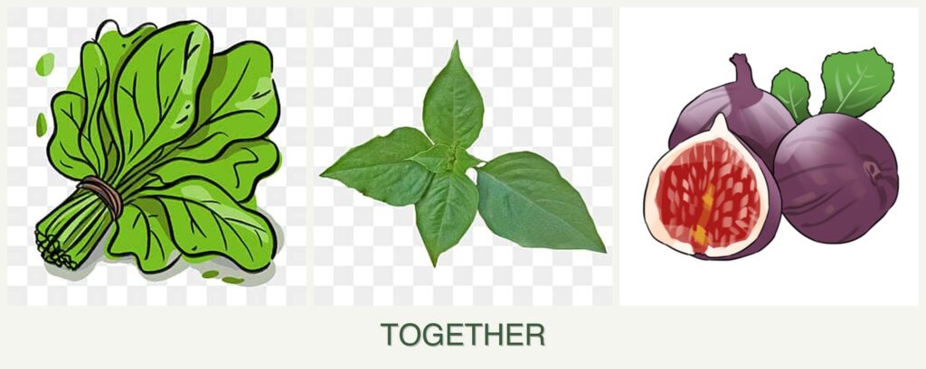 - Harvesting considerations: Spinach and basil require frequent harvesting, which may be difficult if planted too close to figs.