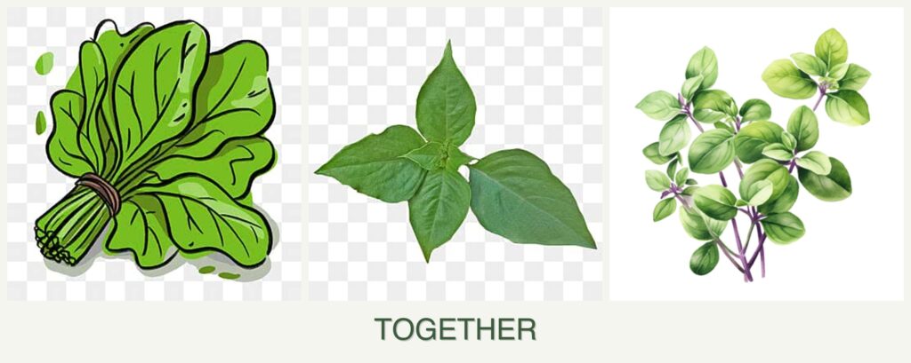 Basil is known for its pest-repellent properties, particularly against mosquitoes and flies, which can benefit spinach and oregano. However, spinach’s high nutrient needs might compete with basil and oregano if not managed properly.