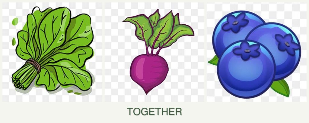 - Pest Control: Spinach and beets can benefit from each other’s pest-repelling properties, but blueberries do not significantly contribute to pest control in this mix.