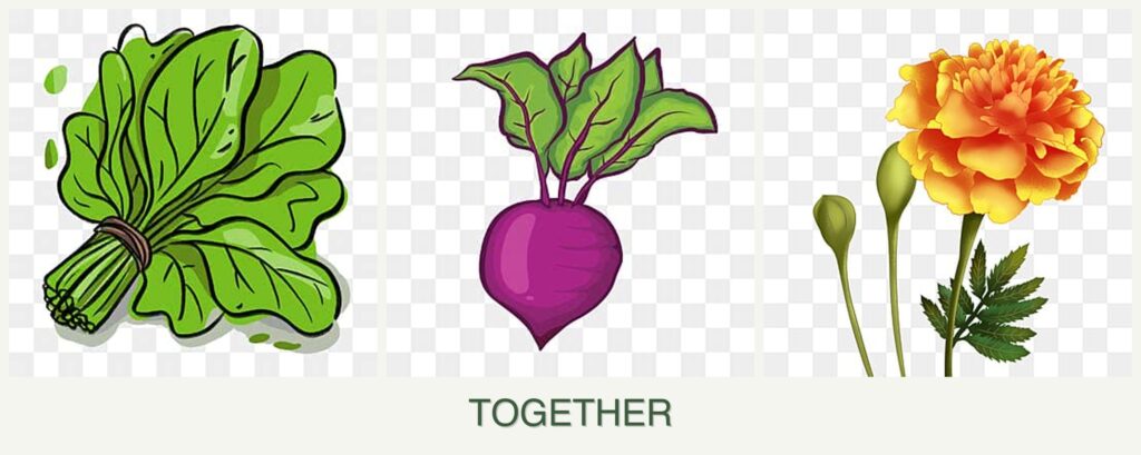 - Improved Growth: Beets and spinach grow well together, with marigolds providing additional protection.
