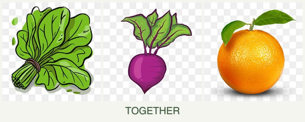 - Resource Competition: Oranges require more space and resources, potentially overshadowing spinach and beets.