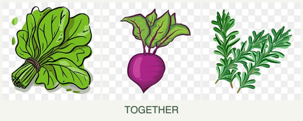Planting spinach, beets, and rosemary together can offer several benefits:
