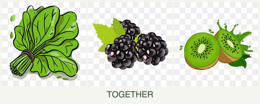 - Pest Control and Nutrient Needs: Blackberries and kiwi can attract similar pests, but spinach doesn’t offer significant pest-repellent properties for them. Additionally, all three plants have different nutrient needs, which can lead to competition for soil resources.