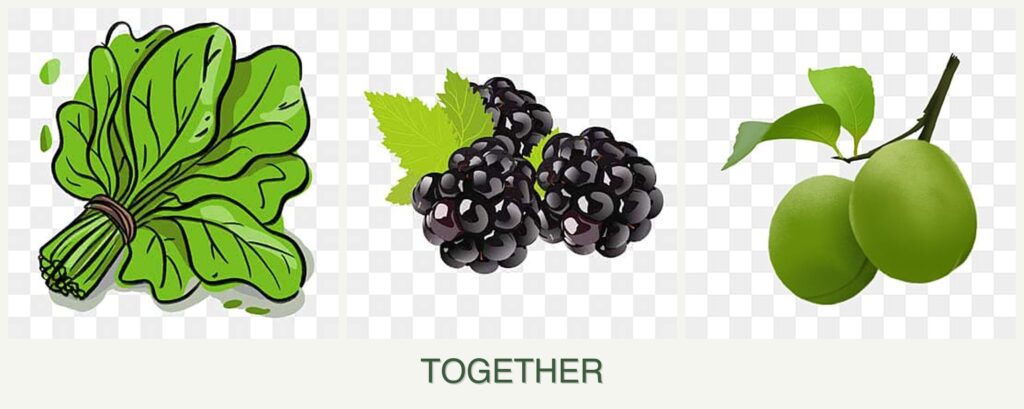 - Nutrient Needs: Spinach has different nutrient requirements and may compete with blackberries and plums for resources.