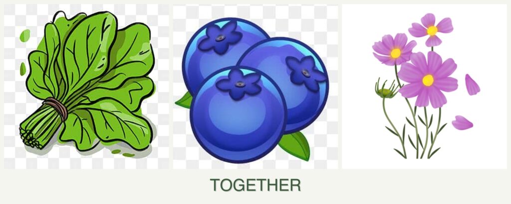 Can you plant spinach, blueberries, and cosmos together? NO.