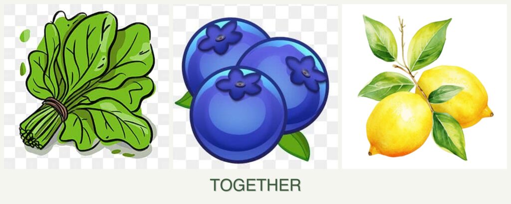 - Growth Requirements: Spinach prefers cooler weather, whereas lemons need warmth. Blueberries and lemons both thrive in acidic soils, but spinach does not.