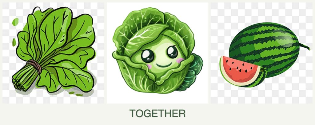 - Harvesting Considerations: Melons’ sprawling vines can make harvesting spinach and cabbage difficult.