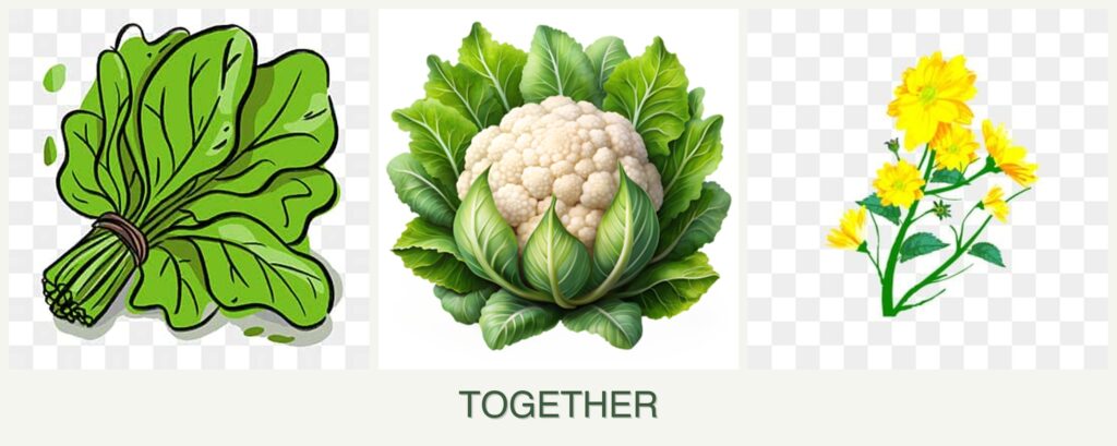 - Improved Growth: Spinach acts as a ground cover, helping to retain soil moisture for cauliflower.
