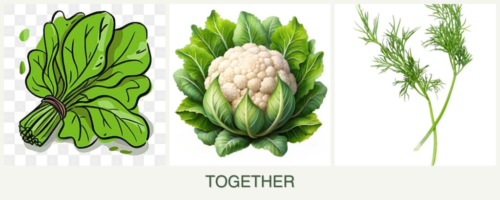 Planting spinach, cauliflower, and dill together offers several advantages:
