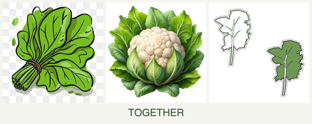 Planting spinach, cauliflower, and kale together offers several benefits: