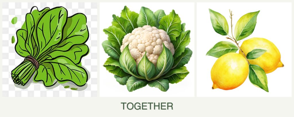 While lemons may not pair well with spinach and cauliflower, the latter two offer several benefits when planted together: