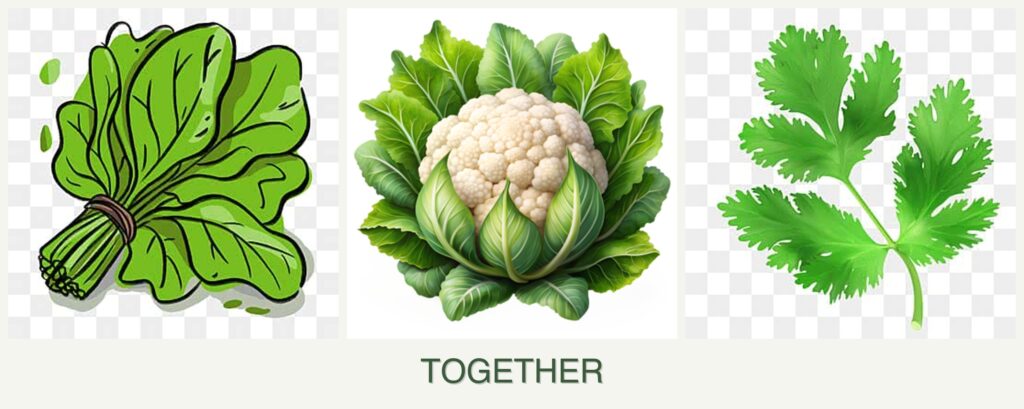 Improved Flavor and Growth: Spinach and parsley may enhance each other’s flavors, while parsley’s presence can improve the growth conditions for cauliflower by attracting beneficial insects.