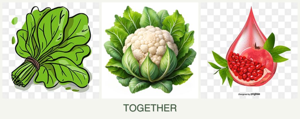 Can Spinach, Cauliflower, and Pomegranates Be Planted Together?