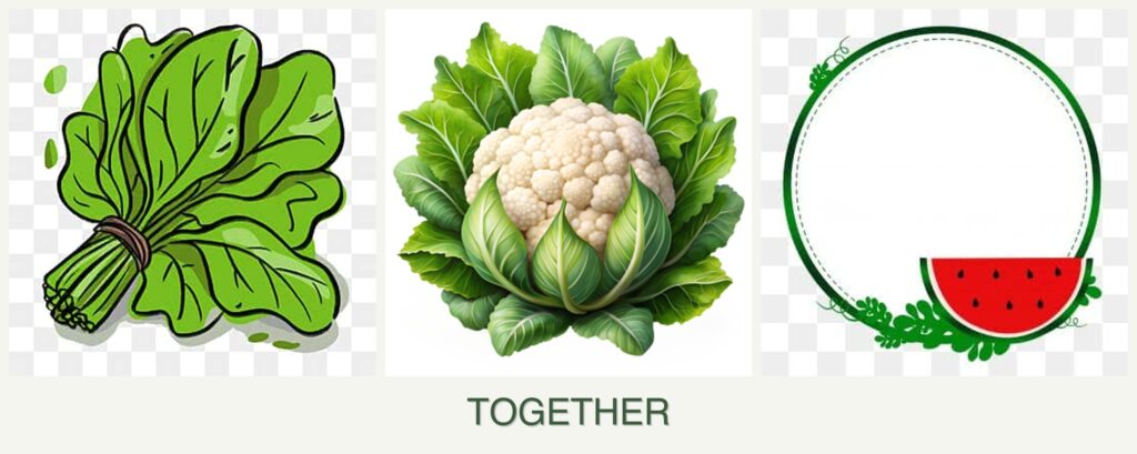 - Competition for Resources: Watermelons’ high nutrient demands could starve spinach and cauliflower.