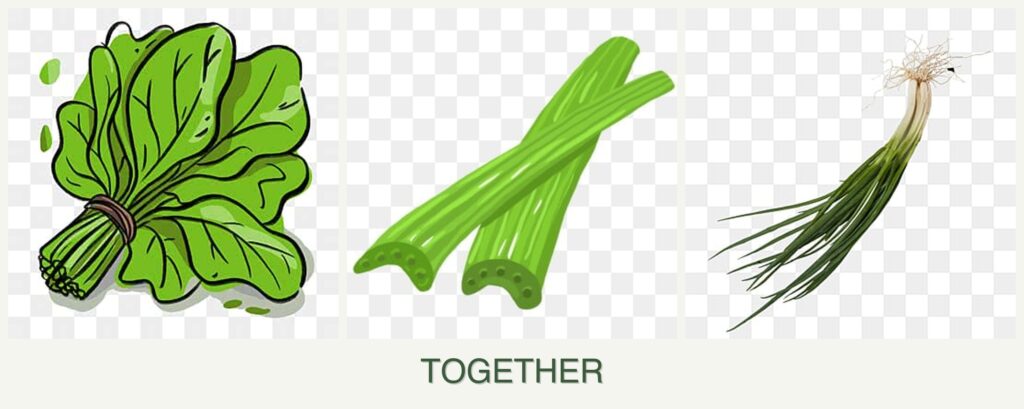 - Competition for Resources: Celery and spinach are both nutrient-intensive, possibly leading to competition if not managed properly.