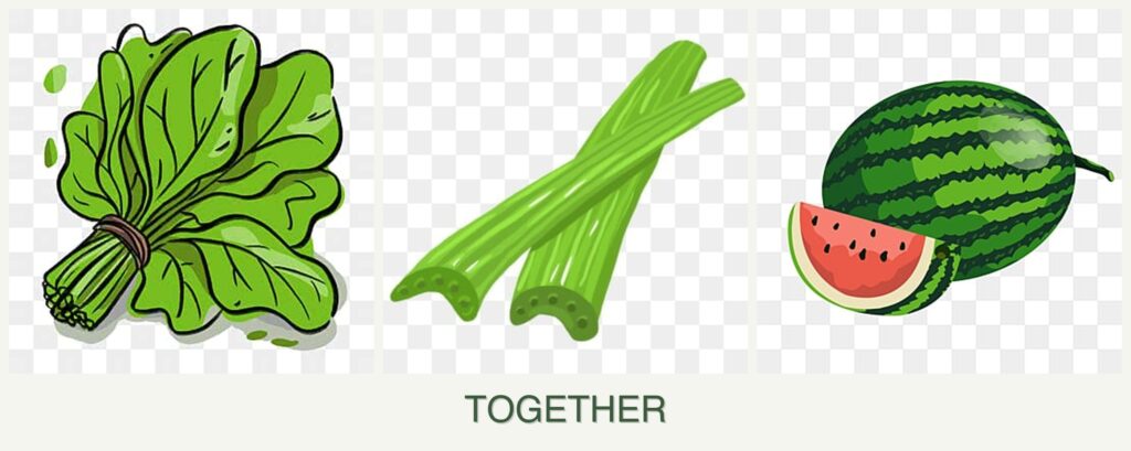 - Growth Requirements: Spinach and celery prefer cooler temperatures, while melons need warmth and full sun.