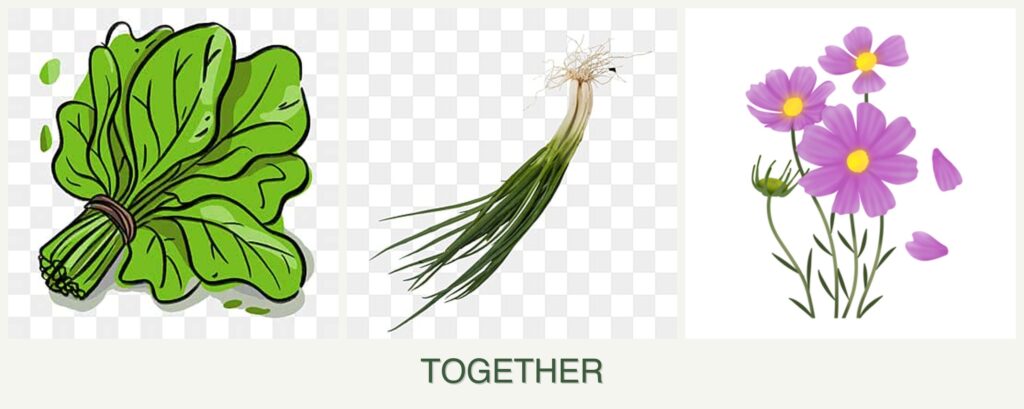Planting spinach, chives, and cosmos together offers several advantages: