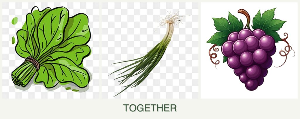 - Pest Control: Chives can deter pests that affect spinach, while grapes benefit from chives’ pest-repelling properties.