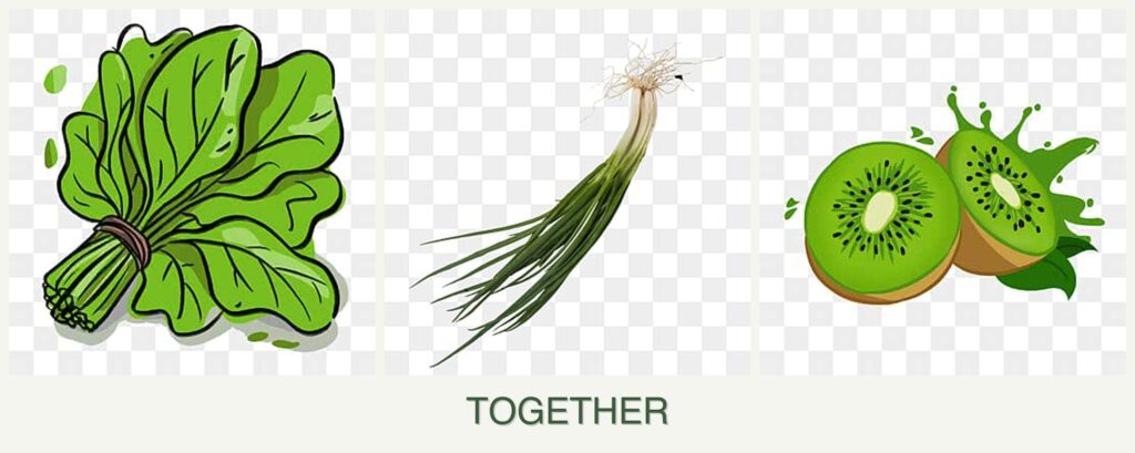 Can you plant spinach, chives, and kiwi together? The answer is a tentative NO. While spinach and chives can be good companions due to their similar growing conditions and mutual benefits, kiwi’s vastly different requirements make it a less ideal partner.