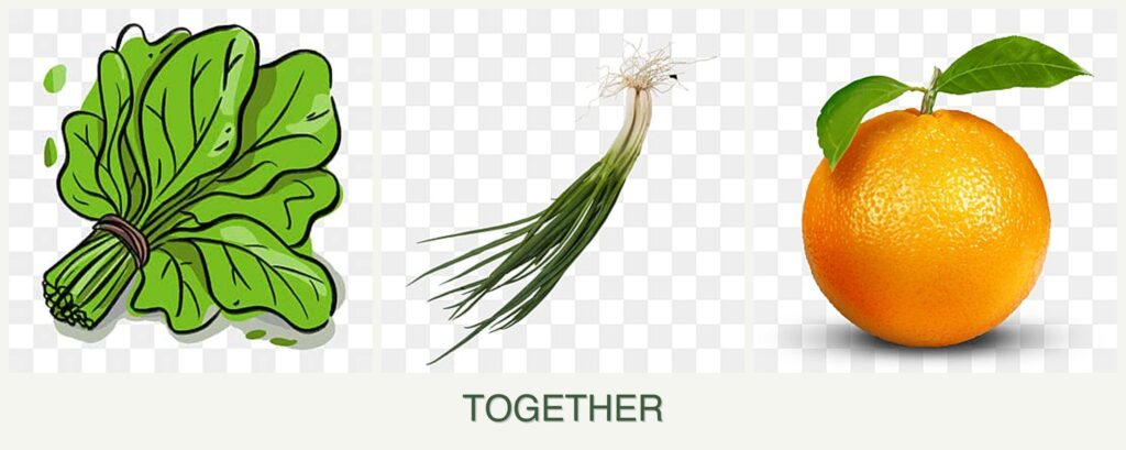 While spinach, chives, and oranges are not ideal companions, spinach and chives can be beneficial to plant together: