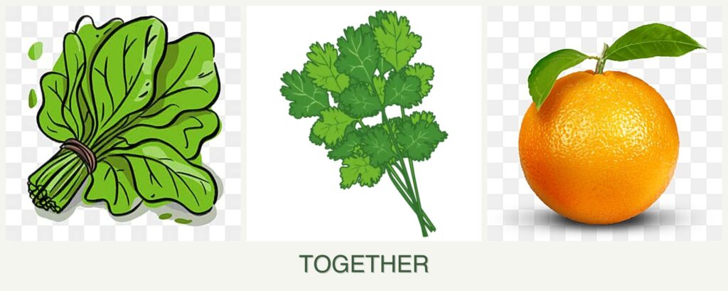 - Spacing: Spinach and cilantro can be grown closer together, while orange trees need more space to spread.