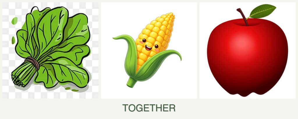 - Resource Competition: Corn’s high nutrient demands can lead to competition with spinach and apples.