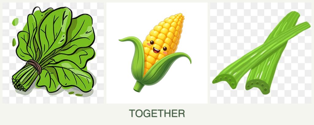 Corn can provide shade for spinach during hotter months, while spinach’s dense foliage can help suppress weeds. Celery, known for its strong scent, can deter some pests. However, these plants have different nutrient requirements, with corn being particularly demanding.
