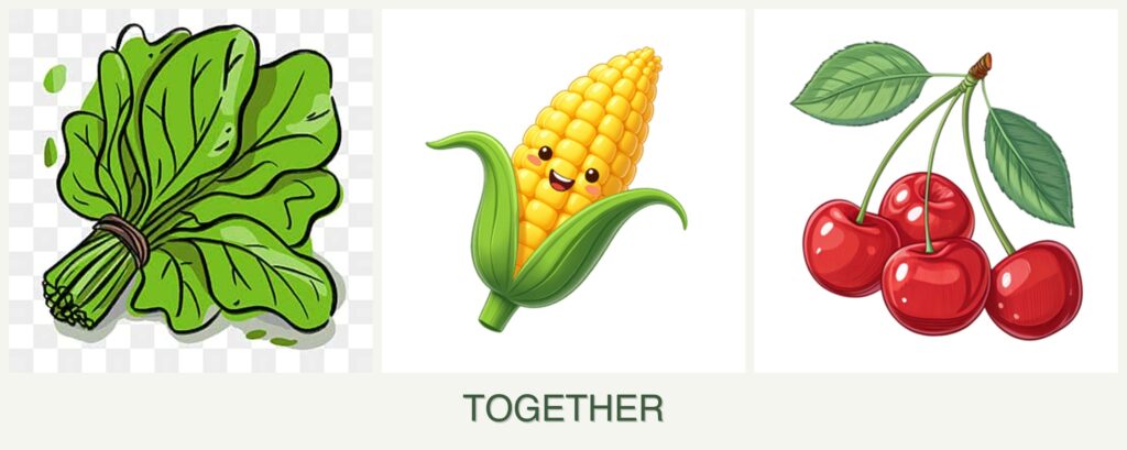 While spinach, corn, and cherries are not ideal companions, planting spinach and corn together can offer some benefits: