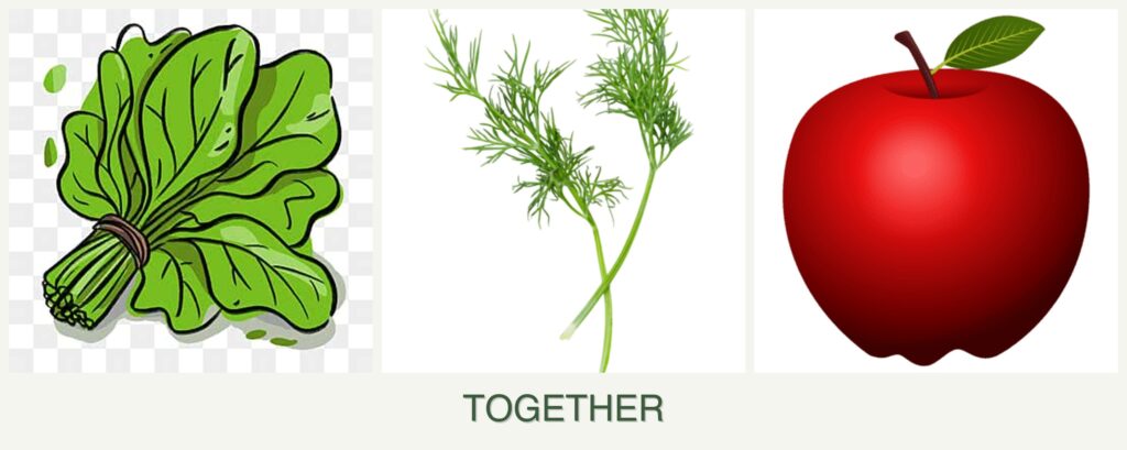 - Timing: Plant spinach and dill in early spring or fall, while apples are best planted in late winter.