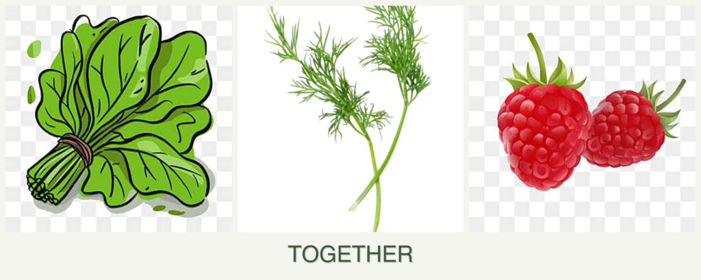 Can spinach, dill, and raspberries be planted together? The short answer is NO for optimal growth. While each plant has its benefits, their differing growth requirements make them less compatible when planted closely.
