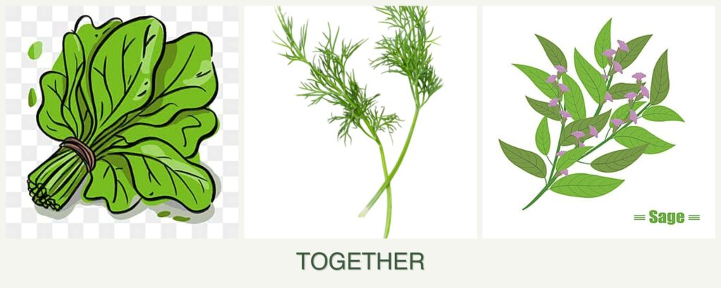 - Timing: Plant spinach in early spring or fall, while dill and sage can be planted in late spring.
