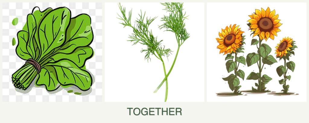 Planting spinach, dill, and sunflowers together offers several benefits: