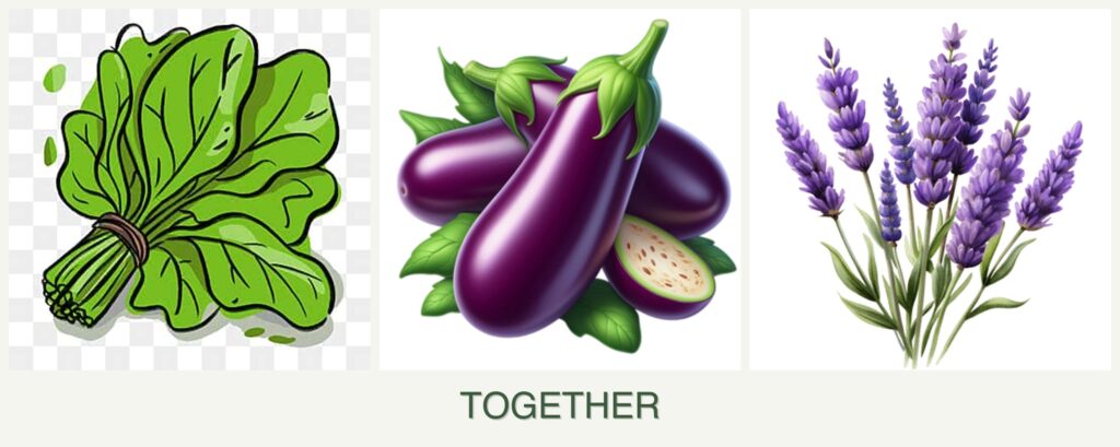 - Harvesting Considerations: Spinach may need to be harvested before eggplant and lavender reach full maturity, which could disturb the root systems of the latter.