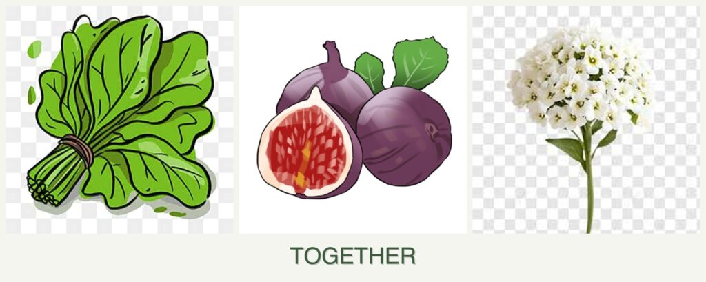 - Soil Health Benefits: Alyssum can improve soil nitrogen levels, benefiting both spinach and figs.